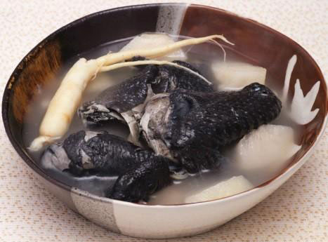 雪梨1个、人参10克、黑枣5颗、乌骨鸡300克、盐5克、味精5克。